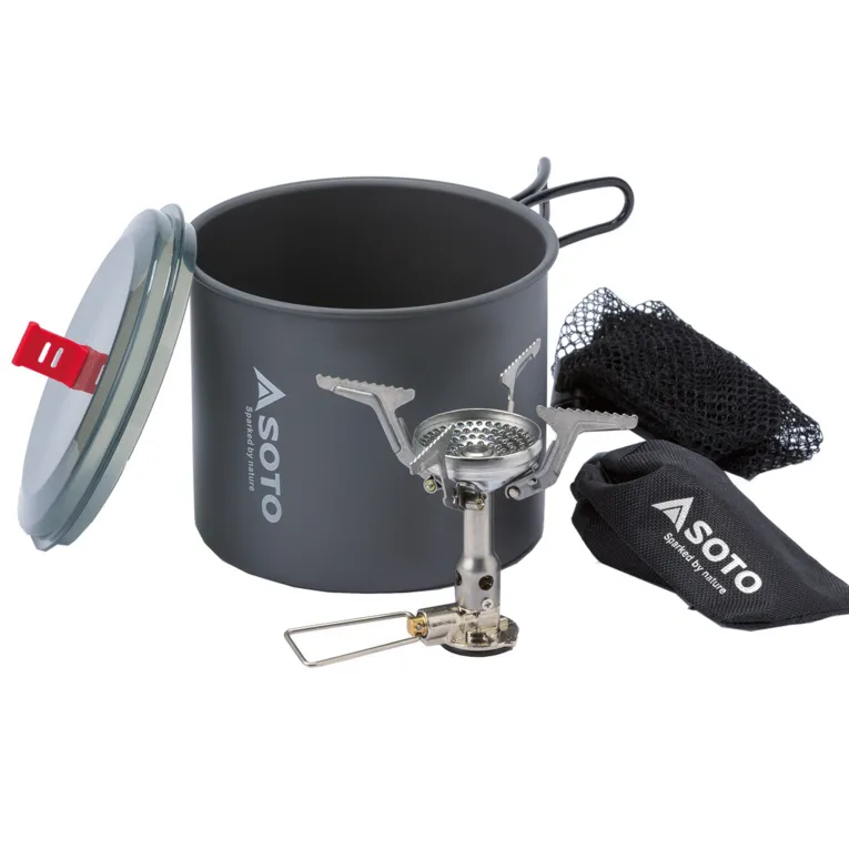 Der Amicus Gaskocher mit New River Pot von Soto ist ein leistungsfähiges Kochset für gewichtsbewusste Backpacking-Fans, für die jedes Gramm mehr ein Gramm zuviel ist. Deshalb verzichtet der Soto beim Amicus Gaskocher auf die Piezzo-Zündung und spart beim ohnehin schon leichten Set weiter an Gewicht.