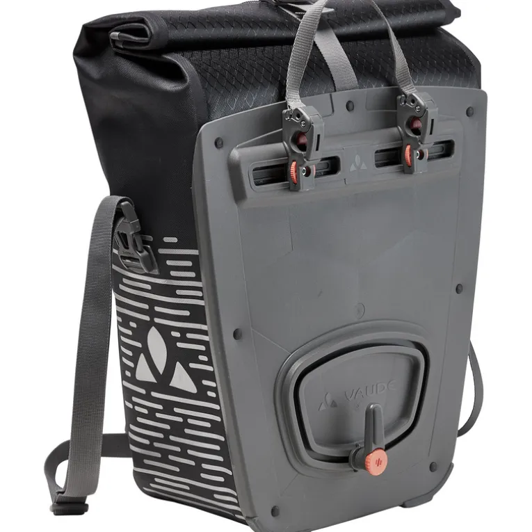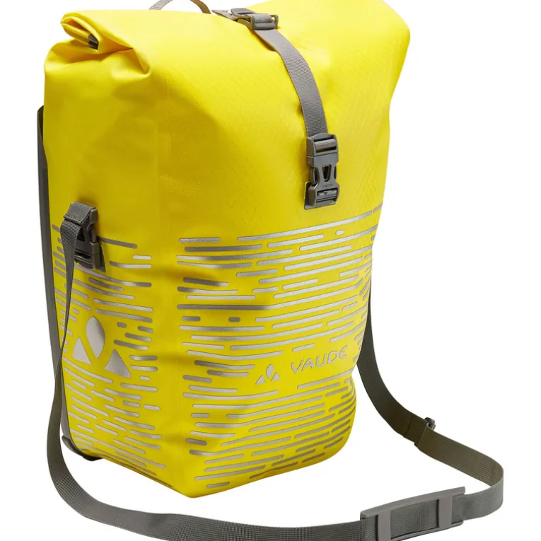 Die Vaude Aqua Luminum Single II Fahrradtasche ist eine wasserdichte Hinterradtasche mit reflektierendem Druck.
