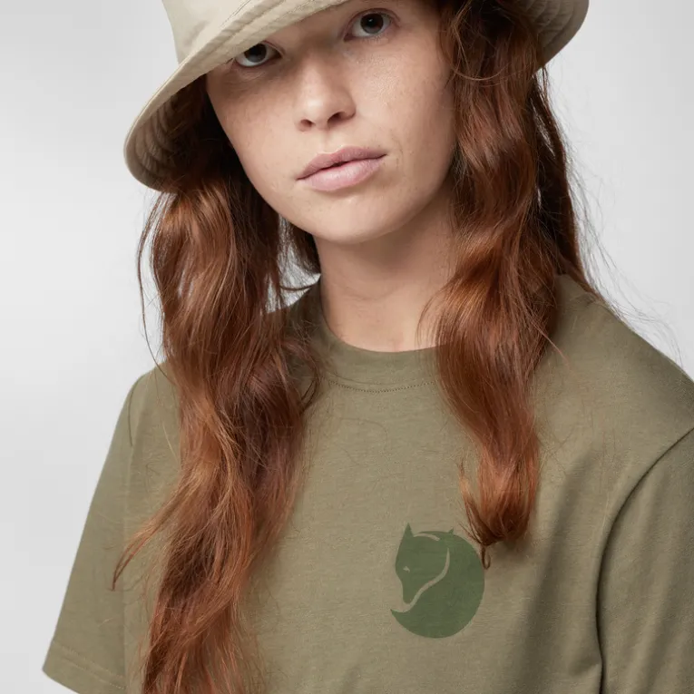 Wo Fjällräven draufsteht, findest du auch schnell den Schneefuchs. Beim Fox Boxy Logo T-Shirt rollt er sich in Form eines kleinen Brustlogos ein. Ansonsten weiß das Shirt mit seinem komfortablen Box-Schnitt und dem Materialmix zu gefallen.