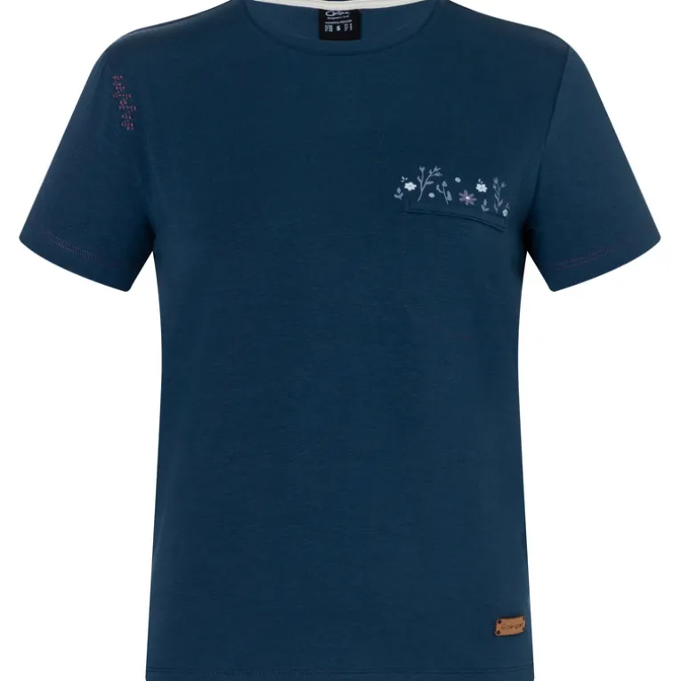 Das Iseo Pocket Happy Flower T-Shirt von Bergzeit verbindet ein klares Design mit liebevollen Details. Der angenehme Materialmix mit hohem Baumwollanteil liegt weich auf der Haut, ist atmungsaktiv und macht jede Bewegung beim Klettern, Bouldern oder unterwegs in der Stadt locker mit. Die kleine Brusttasche und das dezente Muster sorgen für einen stilvollen Akzent, ohne aufdringlich zu wirken. Ein echtes Wohlfühlteil mit femininer Note – gemacht für Fels, Freizeit und alles dazwischen.