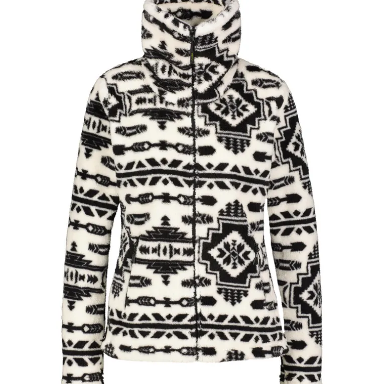 Das robuste Material aus Kunstfaser trägt sich weich auf der Haut und punktet mit einem auffälligen, femininen Print, der der Jacke eine individuelle Note verleiht. Der hohe Kragen schützt den Hals vor Wind und rundet das gemütliche Tragegefühl ab – ob unter der Hardshell oder solo getragen.