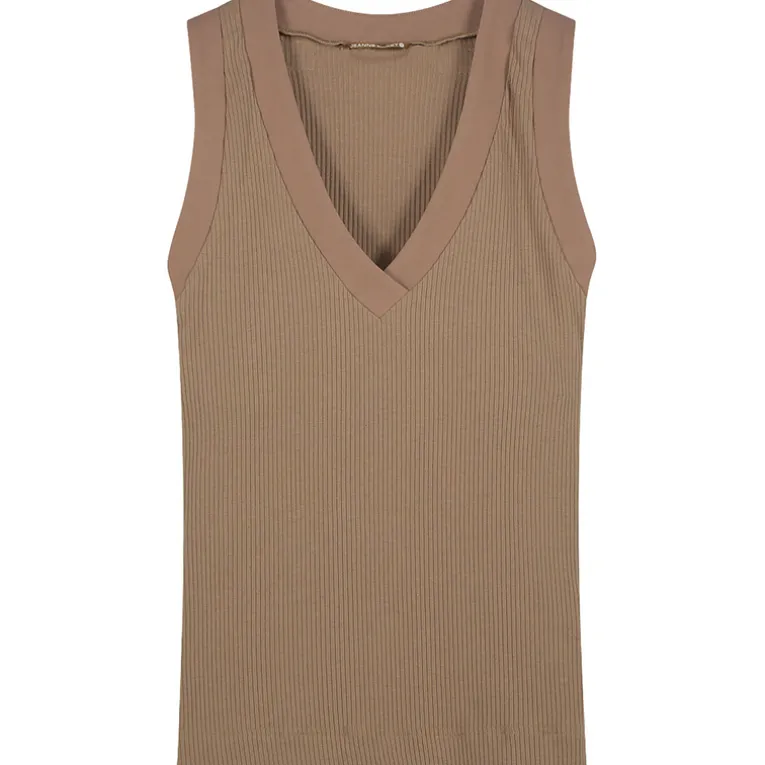 Mit seinem schlichten, aber raffinierten Design ist das Top vielseitig kombinierbar – ob unter einem Blazer, zu sommerlichen Outfits oder als Basic für den Alltag. Der tiefe V-Ausschnitt vorne und der runde Rückenausschnitt verleihen ihm eine elegante Note, während die breiten Träger für einen bequemen Sitz sorgen.