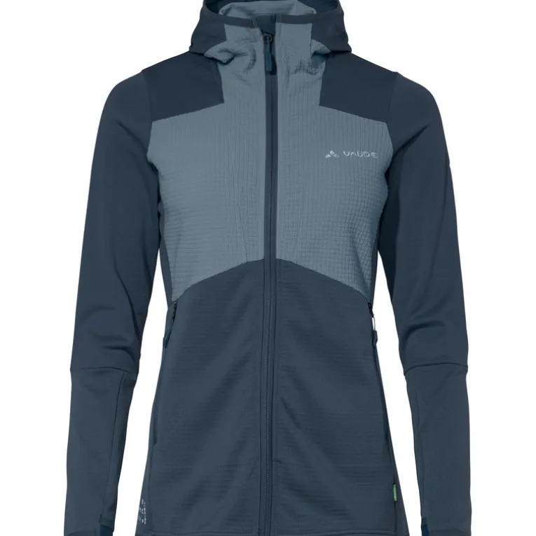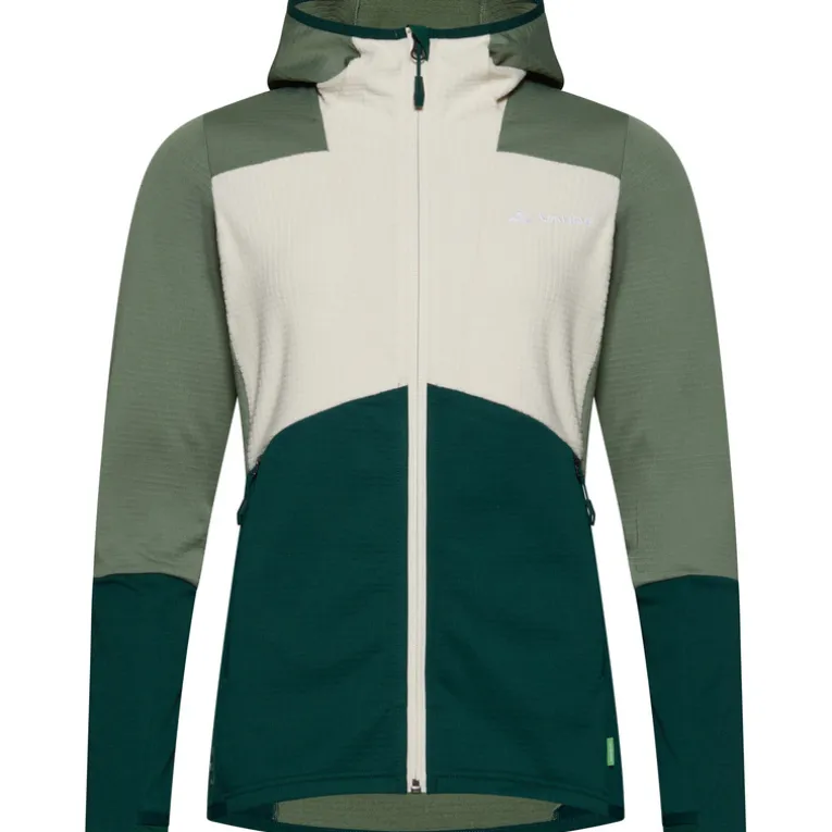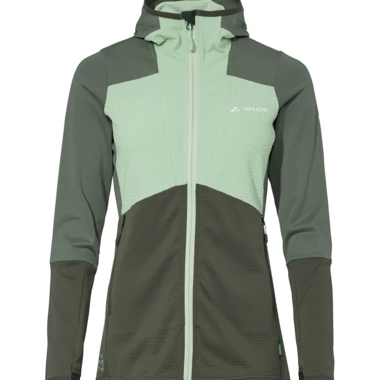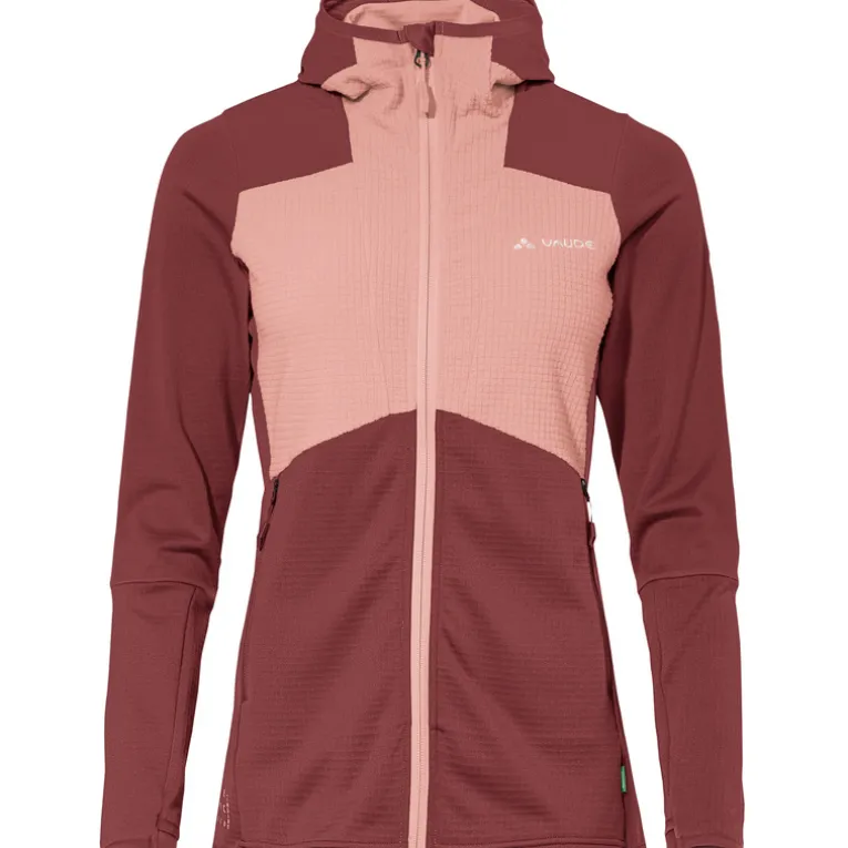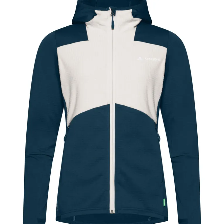 Die Monviso Hooded Grid Fleece Jacke von Vaude ist eine bequeme Jacke für den Bergsport und fürs Skitouren gehen. Sie ist angenehm wärmend, schnell trocknend und leicht tailliert geschnitten. Die seitlichen Taschen mit Reißverschluss wurden so angebracht, dass sie auch unter einem Klettergurt oder unter einem Rucksack leicht erreichbar sind. Eine angeschnittene Kapuze, Daumenschlaufen und auch der frische Look runden die Monviso Hooded Grid Fleece Jacke perfekt ab – toll für aktive Damen.