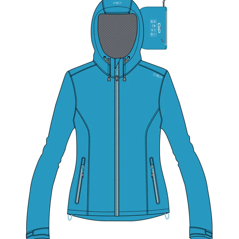 Eine verstellbare, im Nacken aufrollbare Kapuze sowie die Regulierbarkeit von Saum und Ärmelabschlüssen geben der Regenjacke zudem eine solide Ausstattung.