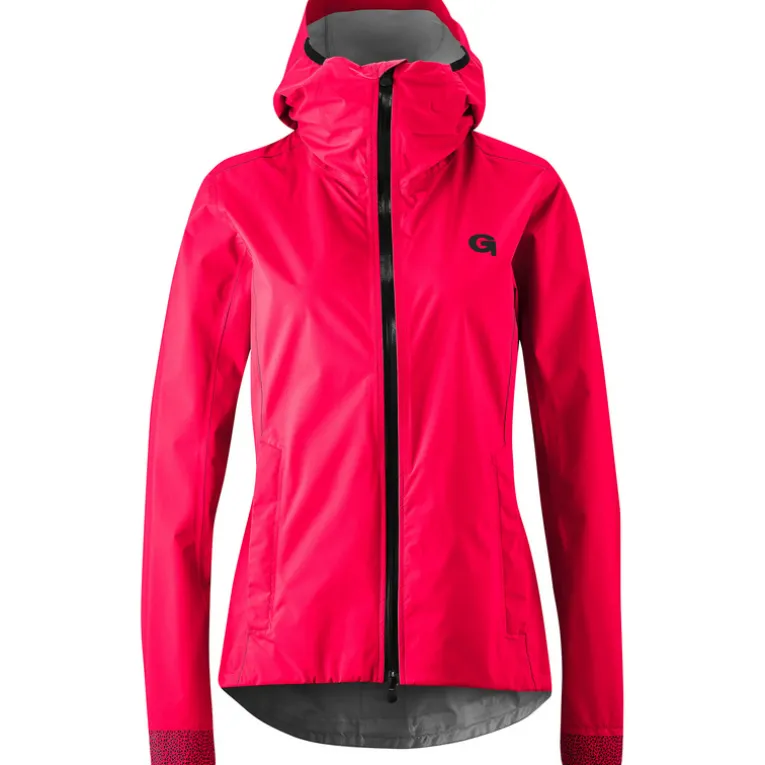 Die Passform der Sura Plus Regenjacke wurde sowohl für die weibliche Anatomie als auch den Radsport optimiert. Dazu zählen beispielsweise die vorgeformten Ärmel, ein verlängerter Rücken und der allgemein körpernahe Sitz. Eine elastische Kapuze und reflektierende Details geben der Jacke noch den letzten Schliff.