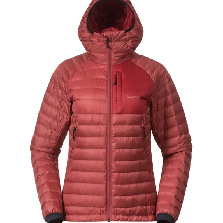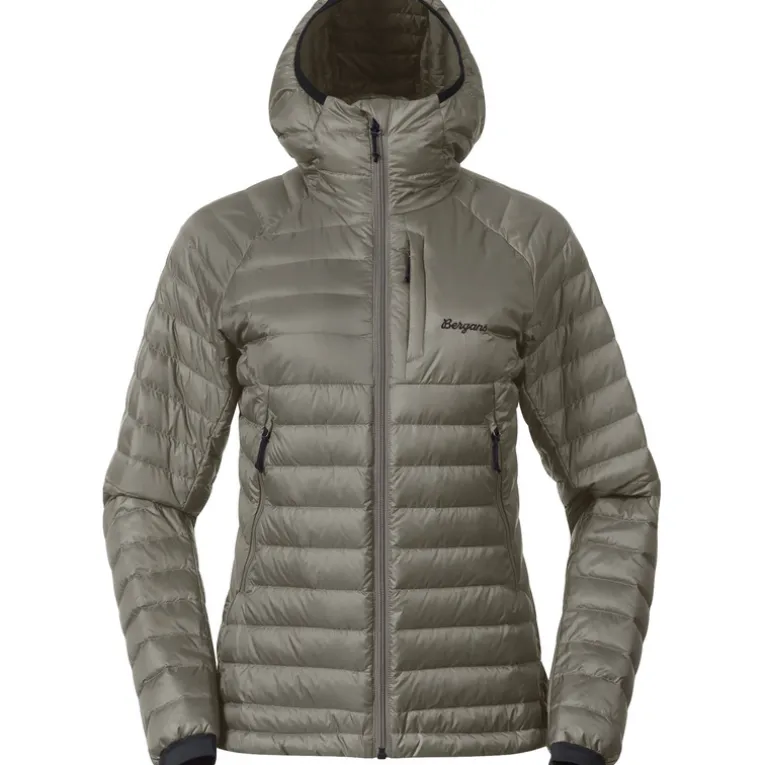 Die Damen Vaagaa Light Down Hoodie Jacke von Bergans ist eine leichte und funktionale Daunenjacke für ausgedehnte Wandertouren an kühleren Tagen. Das robuste Pertex® Quantum Außengewebe ist windabweisend und ist dazu dank der PFAS-freien Imprägnierung wasserabweisend, was sie zu einem zuverlässigen Begleiter bei jedem Wetter macht. Mit ihrer Füllung aus recyceltem Daunen und durchgesteppten Design gewährleistet die Jacke optimale Isolation.