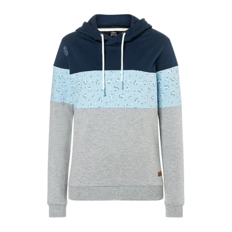 Das dezente Muster und das stilvolle Colourblock-Design verleihen dem Hoodie eine feminine, moderne Note. Die gemütliche Kapuze sorgt für zusätzliche Wärme, wenn der Wind auffrischt oder du dich einfach einkuscheln möchtest. Ein feines Stitching setzt dezente Akzente und macht den Look komplett.