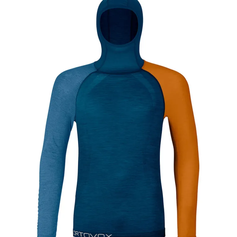 Für noch mehr Komfort wird das Kapuzen-Longsleeve in einem fast nahtfreien Rundstrickverfahren gefertigt und eignet sich mit seinen bequemen Raglanärmeln wunderbar als Baselayer. Dank Bodymapping kommen an den jeweiligen Körperstellen unterschiedliche Materialstärken zum Einsatz. Das Grundgerüst besteht aus einer 120 g/m² Merino-Grammatur, die für ausreichend Widerstandsfähigkeit und Langlebigkeit sorgt. Unter den Achseln ermöglicht eine Netzstruktur die optimale Luftzirkulation und Einsätze mit Rippenstruktur bieten maximale Elastizität. Auch optisch ist der 120 Comp Light Hoodie mit seinem typischen Ortovox-Colorblocking ein echter Hingucker.