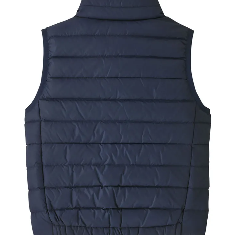 Die Weste wurde aus alten Fischernetzen gefertigt, die der Plastikverschmutzung der Ozeane entgegenwirken. Auch die warme Daunenfüllung aus Enten- und Gänsefedern stammen aus wiederverwendeten Produkten. das spart Ressourcen sowie Müll und schont die Umwelt.
