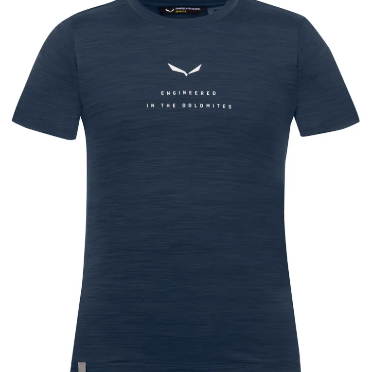 Das Eagle Dry S/S T-Shirt von Salewa für Kinder ist ein atmungsaktives, schnell trocknendes Shirt mit Print auf der Brust.