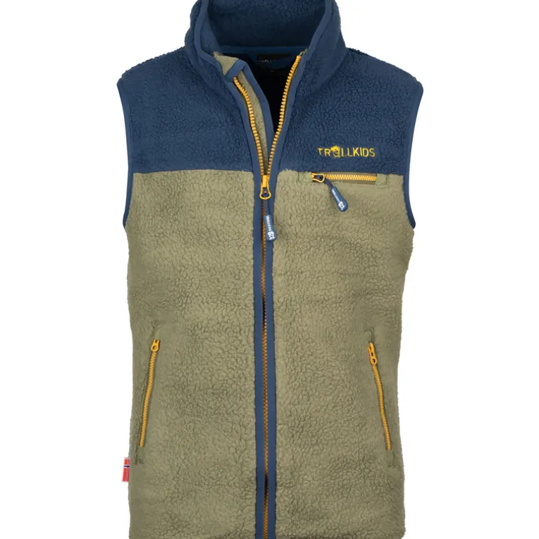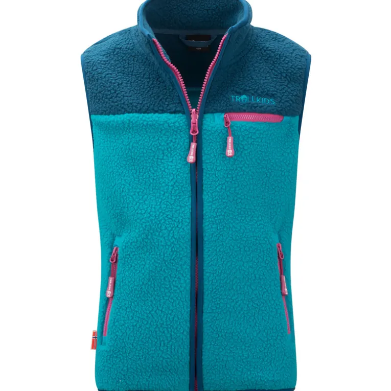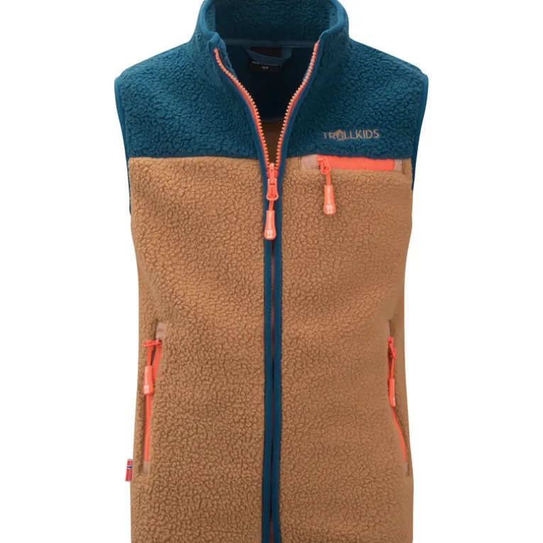 Die Trollkids Hemsedal Weste besteht innen wie außen aus herrlich weichem, dickem, kuscheligem Sherpa Fleece.
