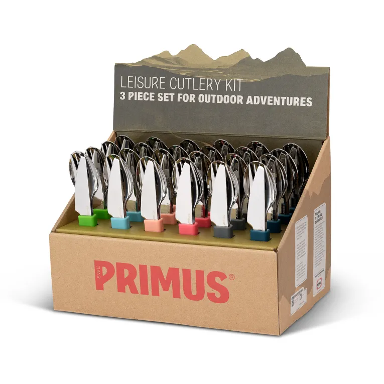 Das Leisure 24 Stück Besteckset von Primus stattet die komplette Großfamilie beim Campingabenteuer mit Essenswerkzeug aus. Es enthält 24 Sets, bestehend aus Messer, Gabel und Löffel, die jeweils von einem hitzebeständigen, griffigen Ring aus Silikon zusammengehalten werden. Das Edelstahl-Besteck ist natürlich rostfrei und robust, damit es dich auf viele Abenteuer begleiten kann.