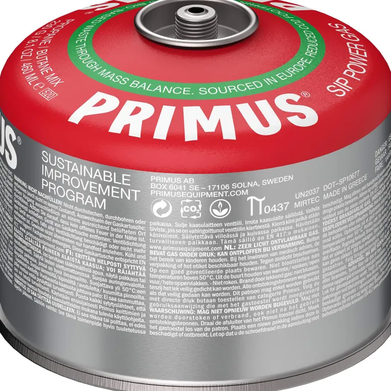 Mit dem Power S.I.P Gas geht Primus einen wichtigen Schritt in Richtung Nachhaltigkeit. Zwar enthält die Gaskartusche keine „grünen Moleküle“, dafür greift das Prinzip des Mengenausgleichs. D.h. Primus kauft die gleiche Menge an Biogas ein, die in der S.I.P Gaskartusche enthalten ist. So wird die Produktion von Biogas, das aus Lebensmittelresten gewonnen wird, wirksam gefördert. Außerdem stammen alle Kompontenten der Gaskartusche aus Europa, so werden die Transportwege deutlich gekürzt und es kann eine bessere Überwachung von Produktion und Herkunft der Rohstoffe gewährleistet werden.
