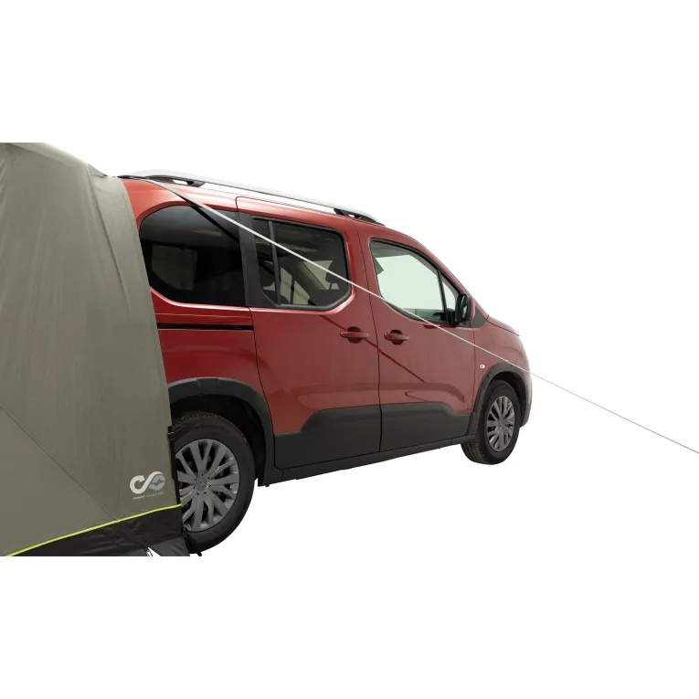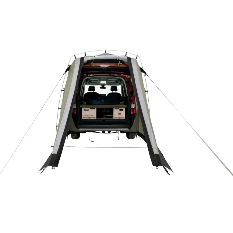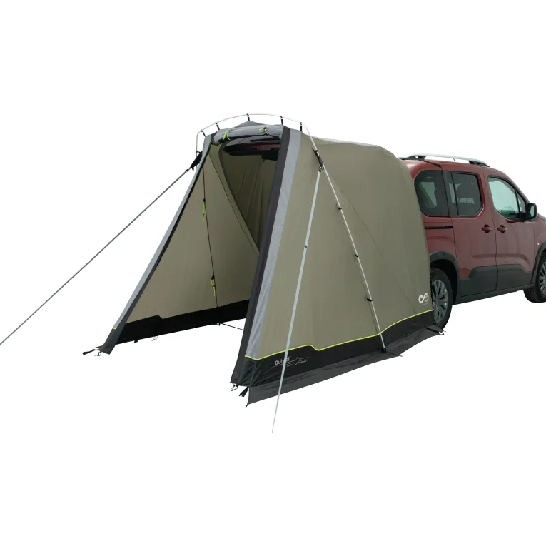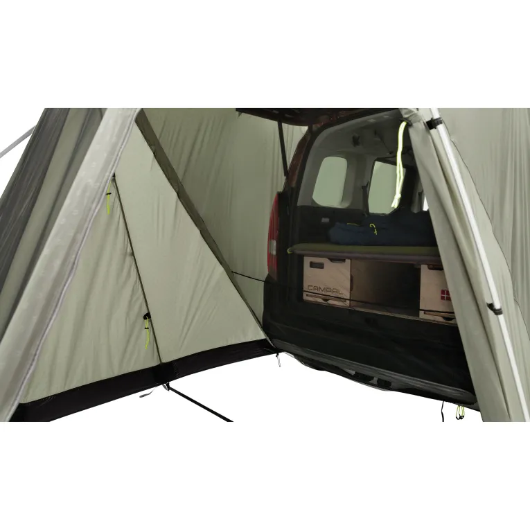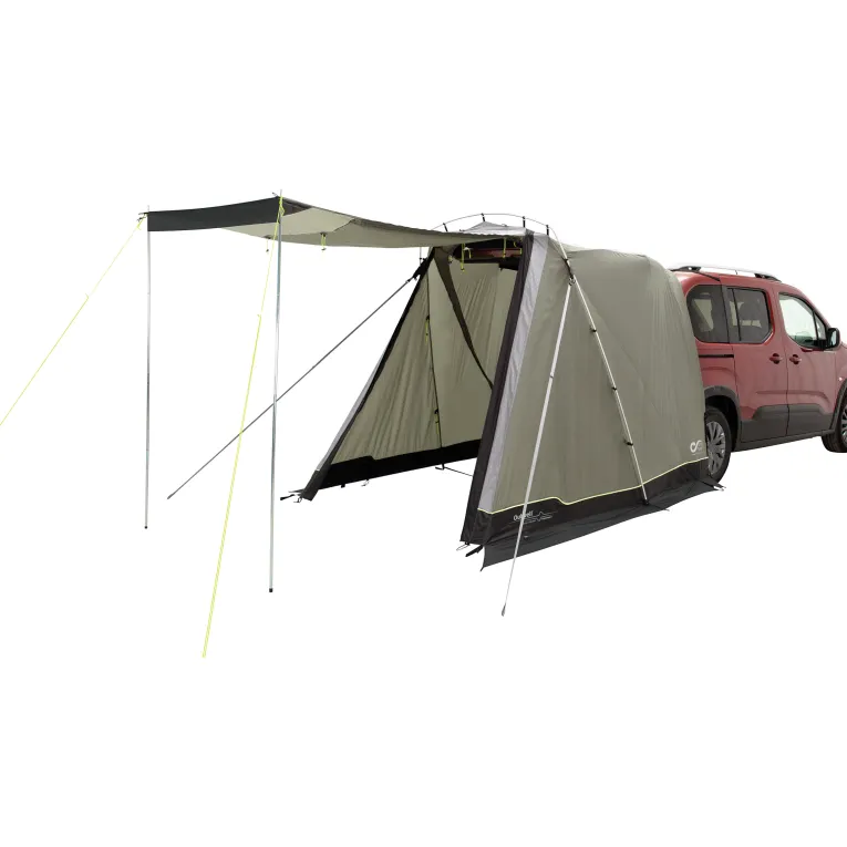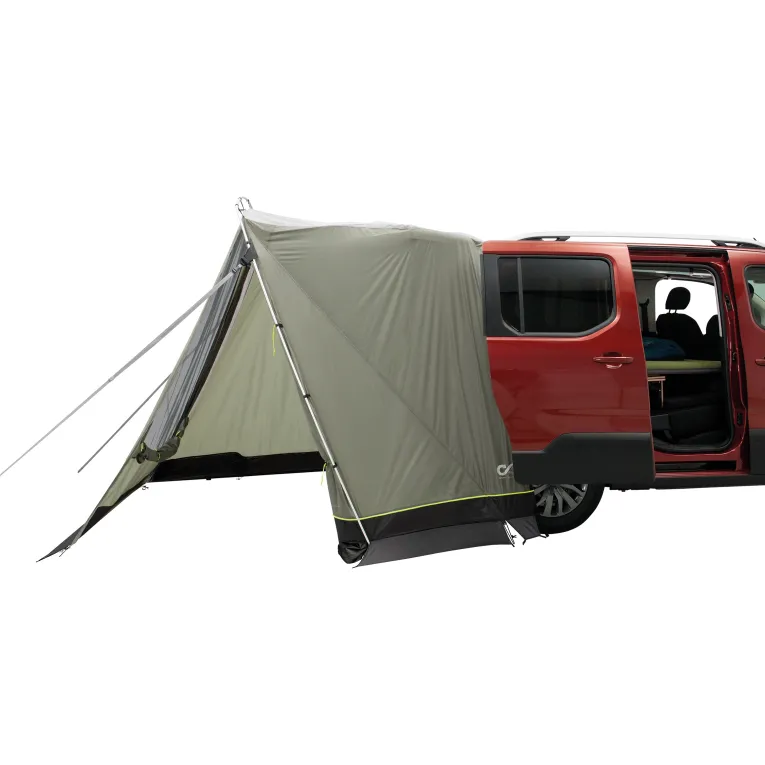Das Sandcrest S Vorzelt von Outwell ist die ideale Ergänzung für Minivans mit einer Höhe von 155-185cm. Speziell für Fahrzeuge wie den VW Caddy, Peugeot Rifter und Citroen Berlingo entwickelt, bietet es perfekte Lösungen für Kurztrips. Ob zum Kochen, als Tagesunterkunft oder Umkleideraum – dieses Zelt macht alles mit. Die clevere Konstruktion ermöglicht es, die Heckklappe sicher zu schließen und zu verriegeln oder sie nachts für eine gute Belüftung offen zu lassen, während das interne Insektenschutzgitter Schutz bietet. Mit nur einem Aluminium-Bogen ist es blitzschnell aufgebaut und lässt sich platzsparend verstauen. Dank des intelligenten Befestigungssystems werden Fahrzeugtüren nicht durch Abspannseile blockiert. Die Zelttür verfügt über ein großes Insektenschutzfenster, das bei Bedarf mit einem wasserdichten Vorhang verschlossen werden kann. Zusätzlich kann die Tür mit optionalem Gestänge als Sonnensegel genutzt werden.