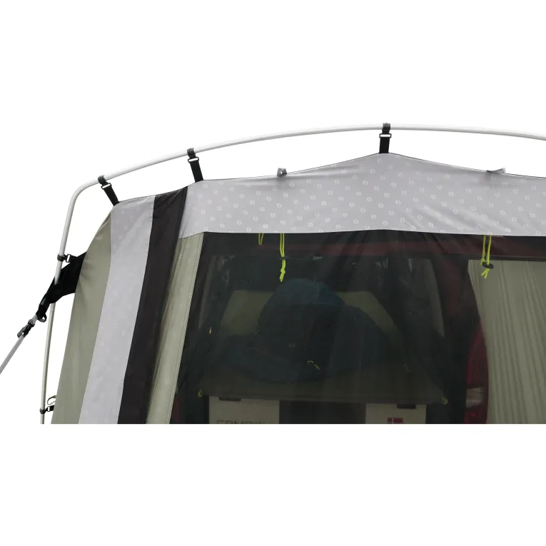 Platzsparendes Vorzelt mit praktischem Insektenschutz für die Rückklappe des Campers
