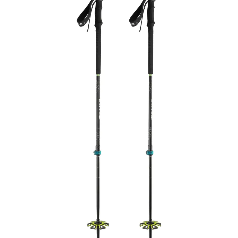 Für optimalen Halt auf rutschigem Untergrund sorgt die verschleiß- und korrosionsbeständige Hartmetallspitze. Der bewegliche, große Schneeteller aus flexiblem Material passt sich perfekt an Hangneigungen und wechselnde Schneeverhältnisse an und verhindert ein Einsinken. Ein Gummischutz für die Spitze schützt beim Transport.