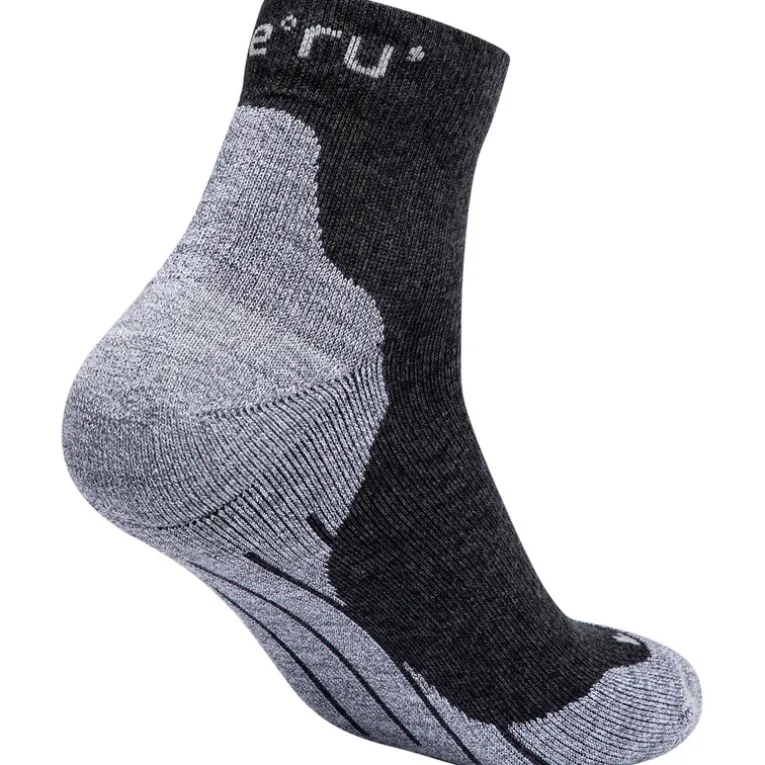 Mit dem Srinagar 2er Pack Socken von Meru bist du für deine nächsten Wanderungen gut aufgestellt. Der Mix aus Baumwolle mit funktioneller Synthetik sorgt für ein gutes Klima am Fuß; härter beanspruchte Stellen an Ferse und im Zehenbereich sind verstärkt. Durch die anatomische Form und die elastischen Bänder am Mittelfuß sitzen die Srinagar Socken sehr stabil. Die Schaftlänge ist eher kurz gehalten – ideal für wärmere Tage.
