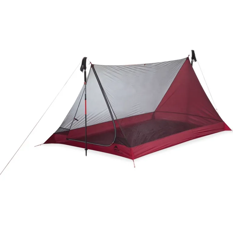 Sollte es doch mal einen Regenschauer geben, lässt sich das Mesh House ideal mit den separat erhältlichen Thru-Hiker 70 oder 100 Wing von MSR kombinieren.