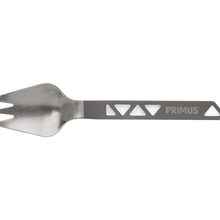 Die robuste Primus Trailspork Ti aus hochwertigem Titan vereint Löffel, Gabel und Messer in einem praktischen Besteck, das sich aufgrund seines geringen Gewichts ideal für die Trekkingausrüstung eignet.