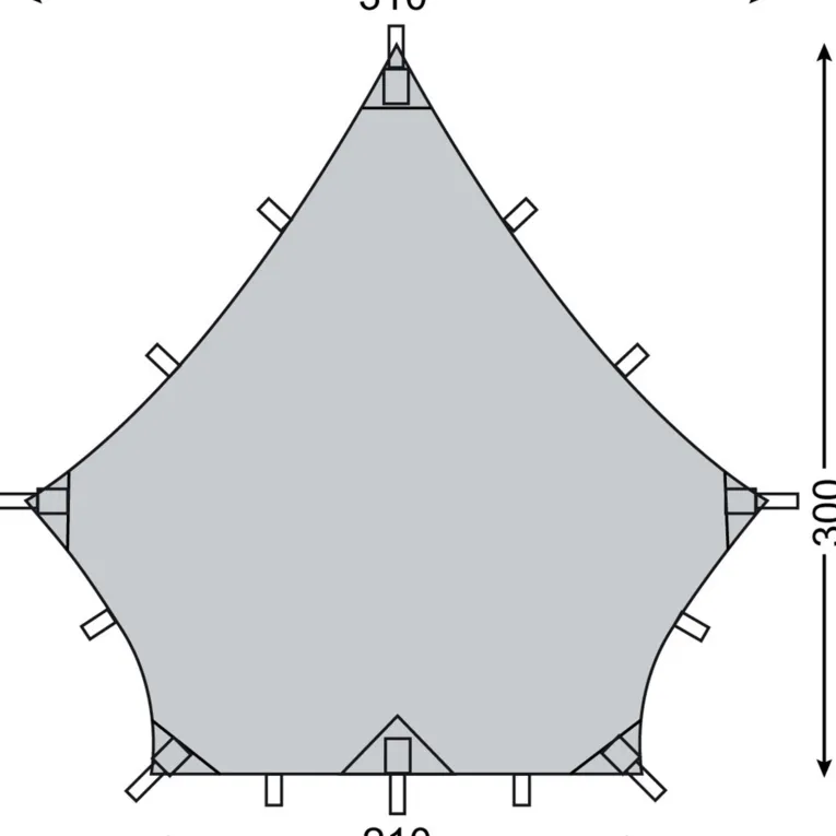 Mit seiner speziellen Form ist das Voss Diamond SI Tarp perfekt auf die Tunnelzelte von Nordisk abgestimmt. Dank vieler Fixierungspunkte und Einstecktaschen für Gestänge lässt sich das Tarp vielseitig abspannen und schenkt dir zusätzlichen Schatten oder gibt dir die Möglichkeit bei Regen draußen zu sitzen.