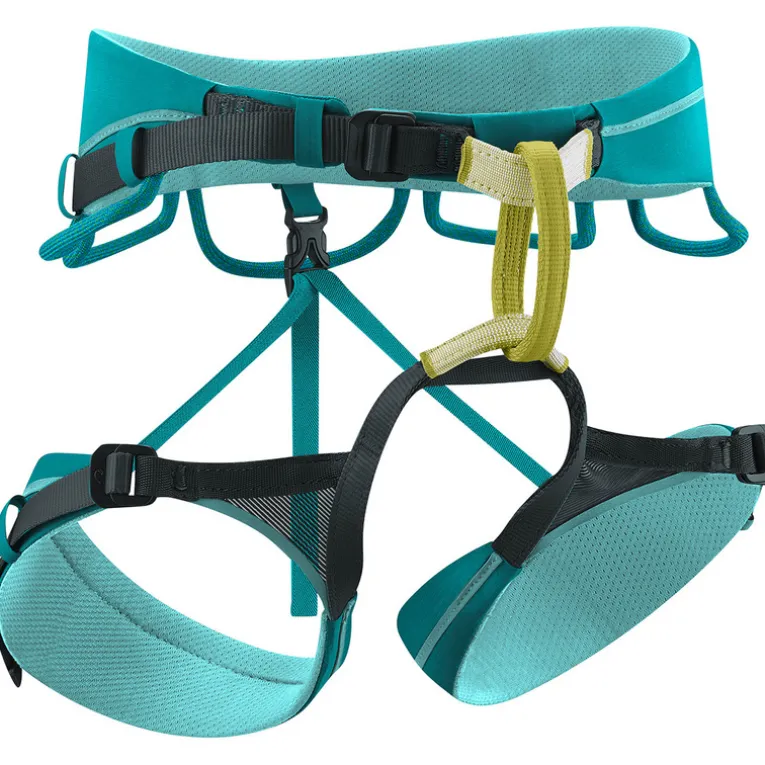 Das gelingt dank einer 3D Mesh-Polsterung mit weichen Bandkanten und Soft Frame Konstruktion. Der spezifisch weibliche Schnitt besteht in einer extra langen Einbindeschlaufe, die das Hüftteil des Gurtes angenehm oberhalb der Hüfte platziert. Dank dreier Schnallen lässt der Autana sich perfekt einstellen, ob über Kletterleggings oder Winterhosen getragen. Fünf stabile Materialschlaufen sind hier ebenso dabei wie zwei Befestigungsmöglichkeiten für Eisschrauben.