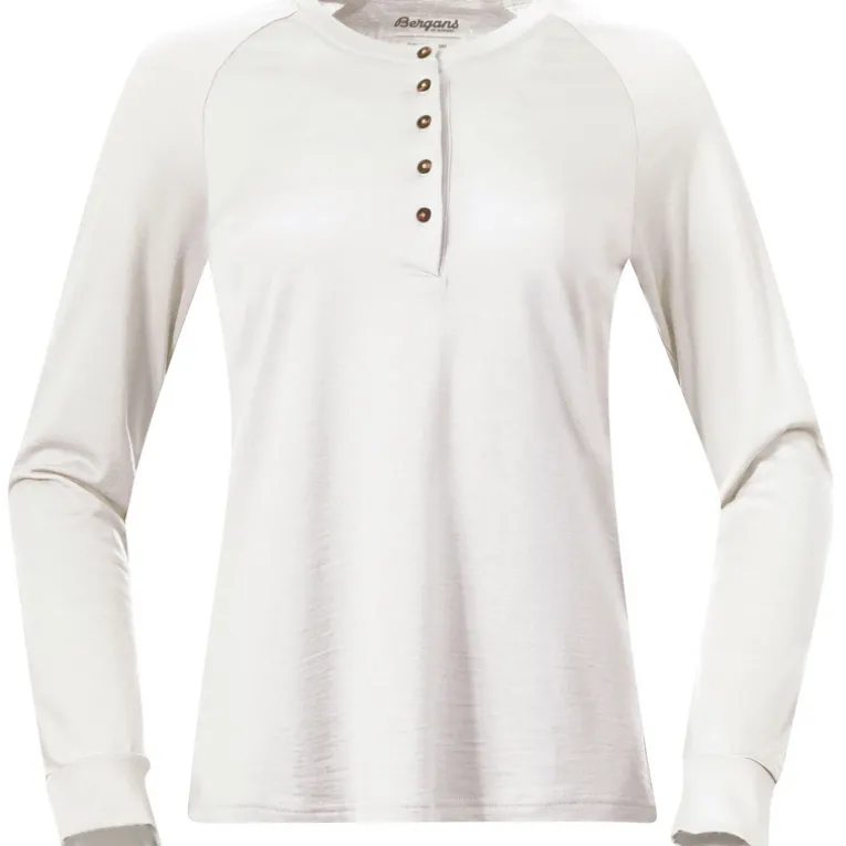 Der coole Henley-Kragen rundet das Lysebu Wool Henley Longsleeve von Bergans optisch toll ab.