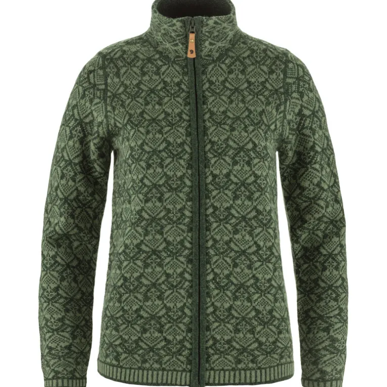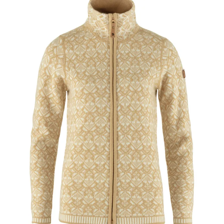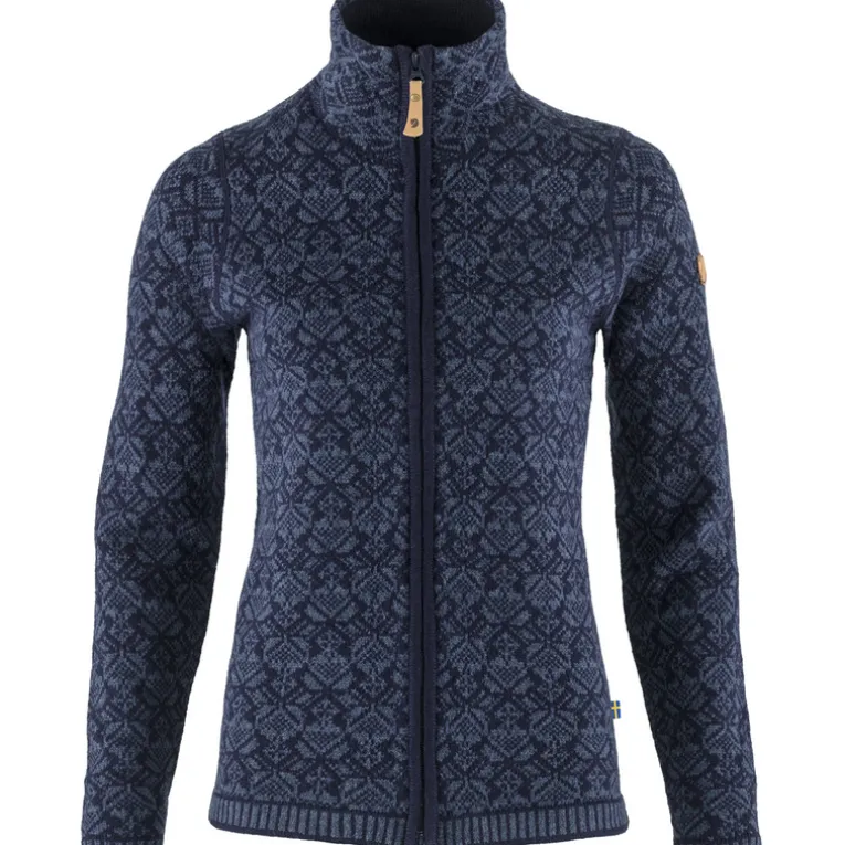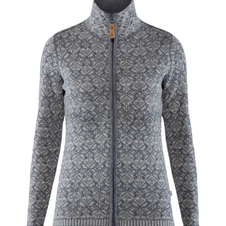 Mit der Snow Damen Jacke bringt Fjällräven ein schönes Stück skandinavische Folklore in den winterlichen Alltag. In die weiche Lammwolljacke mit dem hübschen Jacquardmuster schlüpft man gerne bei Spaziergängen durch frostige Winterlandschaften oder beim Bummeln über den Weihnachtsmarkt. Der Zwei-Wege-Reißverschluss zieht über die ganze Länge, bis hinauf zum warmen Stehkragen.