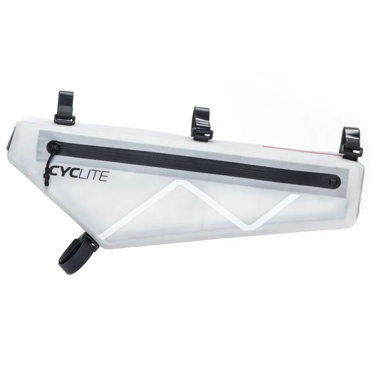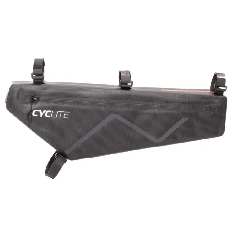 Suchst du eine Rahmentasche, in der Dinge schnell Platz finden, die etwas mehr wiegen aber trotzdem schnell zur Hand sein müssen? Dann ist die Cyclite Frame Bag / 01 Rahmentasche dein Mittel der Wahl. Die Tasche bietet erstaunlich viel Platz, verfügt über zwei wasserdichte Reißverschlüsse, die einen schnellen Zugriff auf das etwa 2,8 Liter fassende Hauptfach sowie ein flaches Wertsachenfach erlauben. Dazu kommen zwei Netz-Innentaschen, die für eine schnelle Organisation des Tascheninhalts sorgen, auch eine Schlüsselhalterung ist vorhanden.