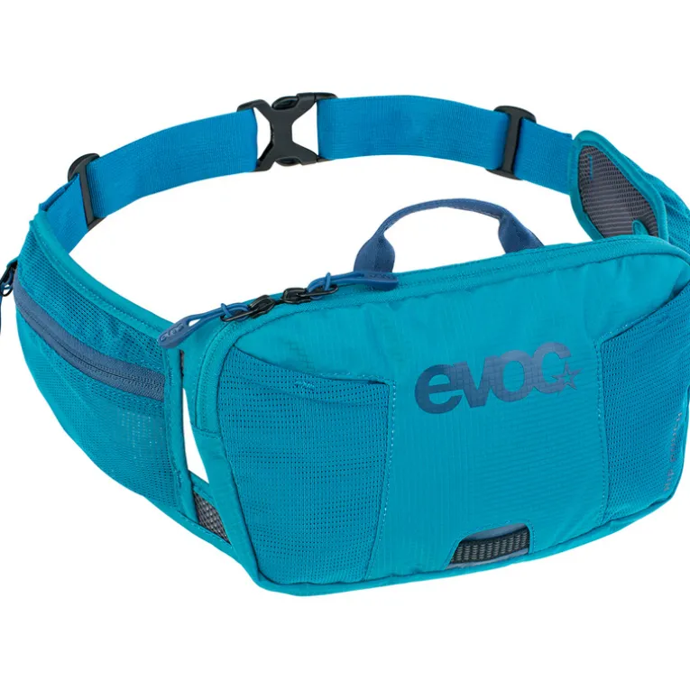 Die Hip Pouch Hüfttasche von Evoc bietet beste Performance auf Radtouren, findet aber ebenso bei kurzen Wanderungen oder beim Laufen ihre Berufung. Sie bietet neben zwei Proviantfächern für Gels und Riegel zwei kleine Seitentaschen für Kleinteile. Ihr Hauptfach nimmt mit einem Liter Volumen ausreichend Material für kurze Touren oder ein Wechselshirt auf. Eine Blinklichthalterung erhöht zudem die Sichtbarkeit im Straßenverkehr. Um auch anstrengendere Touren angenehm durchziehen zu können, ist die Polsterung am Körper hervorragend belüftet.