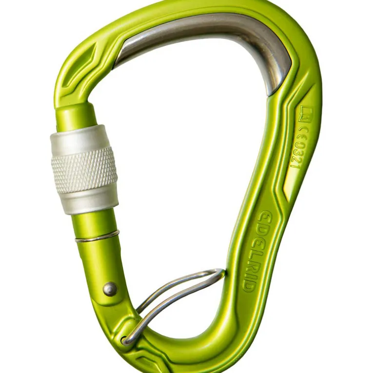 Der HMS Bulletproof Screw FG Karabiner von Edelrid ist ein klasse Sicherungskarabiner mit Verdrehschutz, der ein Stahl-Inlay im Scheitelpunkt aufweist, das die Abnutzung durch die Seilreibung verringert.