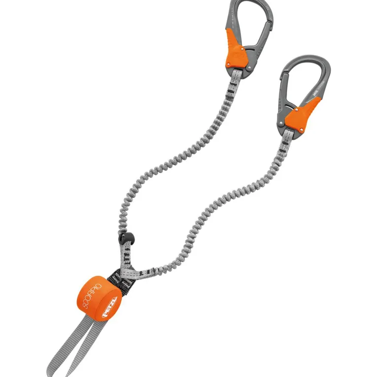Das neue Scorpio Eashook Klettersteigset von Petzl überzeugt durch seine neuen Karabiner und den neu aufgelegten Bandfalldämpfer, der hervorragende Sicherheitsmargen bietet. Seine Eashook Karabiner punkten mit einer leichten Bedienbarkeit und ihrer vergrößerten Öffnung um sich leichter ins Seil einhängen zu können. Die elastischen Arme behindern den natürlichen Bewegungsfluss beim Klettersteiggehen nicht, was sich insbesondere auf den Kraftverbrauch positiv auswirkt. Für die nötige Sicherheit sorgt ein Bandfalldämpfer, der in einer Reißverschlusshülle untergebracht ist, sodass der Zustand stets kontrollierbar bleibt. Eine Rastschlinge sorgt für Komfort bei Erholungs- und Fotopausen.