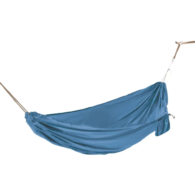 Sie ist leicht und sie ist eine Hängematte, die du immer mit dabei hast: die Travel Hammock Kit von Exped. Ob du Campen oder einfach im Garten abhängen möchtest, mit dieser breiten Hängematte kannst du die Natur in vollen Zügen genießen. Sie kommt mit Gewebebändern, die baumschonend angebracht wird. Im mitgelieferten Packsack kannst du dein Buch, eine Wasserflasche oder auch das Ebook transportieren.
