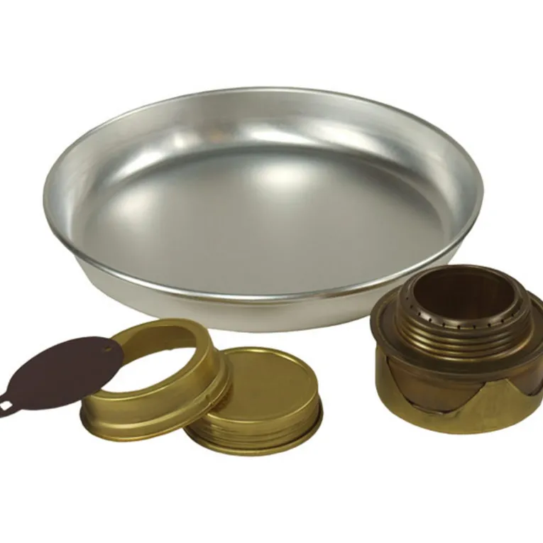 Die Zusatzausrüstung für den Winter oder kalte Witterung: Das Set besteht aus einem Spezial-Spiritusbrenner, der vorgeheizt werden kann, und einer reflektierender Bodenplatte. Das Set passt auf Sturmkocher der Serien 25 und 27.
